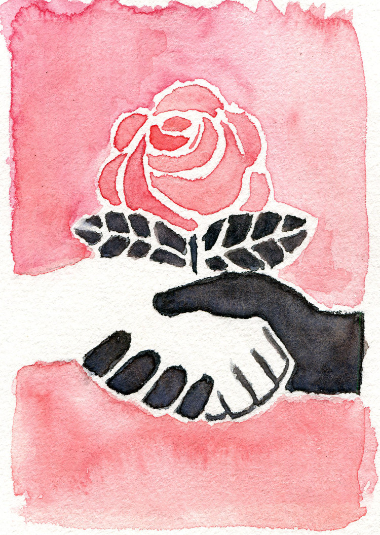 Watercolor rendition of the DSA logo which I think is gorgeous -- striking, almost intimidating, in its color contrasts, but gentle, hopeful, peaceful, and beautiful in its imagery.