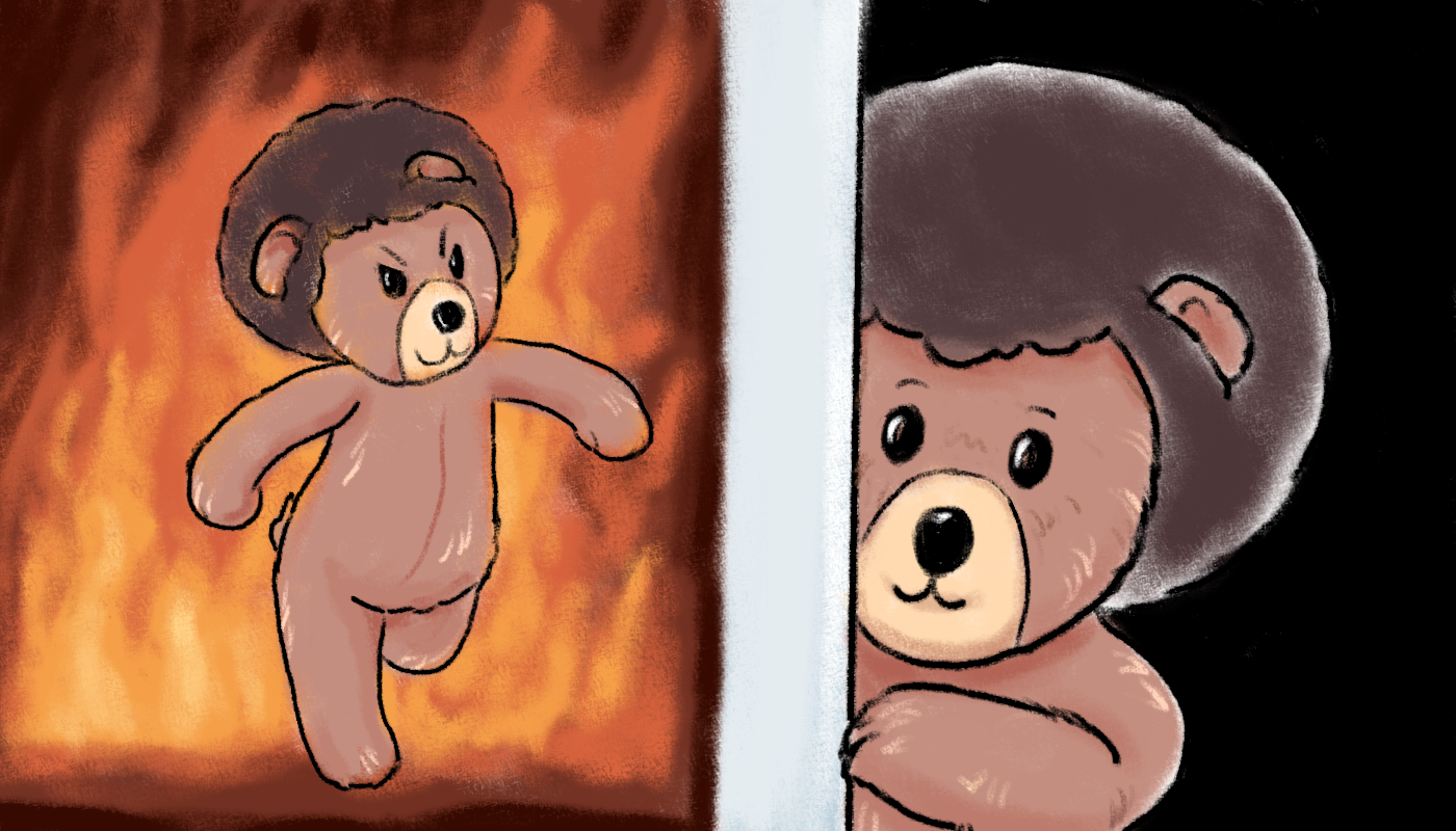 A portrait I drew of Liam. I say that he has evil teddy bear energy because he is very cute but... he is Evil. (In a mostly harmless sort of way, though.)